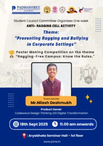 Preventing Ragging and Bullying in Corporate Settings Padmashree Institute of Management & Sciences (PIMS) proudly organized a One-Week Anti-Ragging Cell