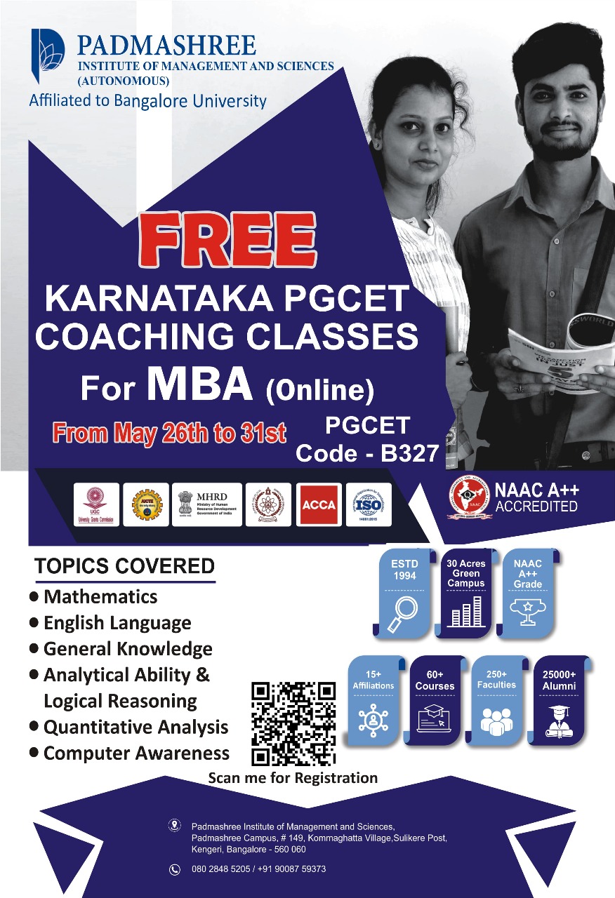 Free Karnataka PGCET MBA Online Coaching Classes – Limited Time Offer by Padmashree Institute of Management and Sciences