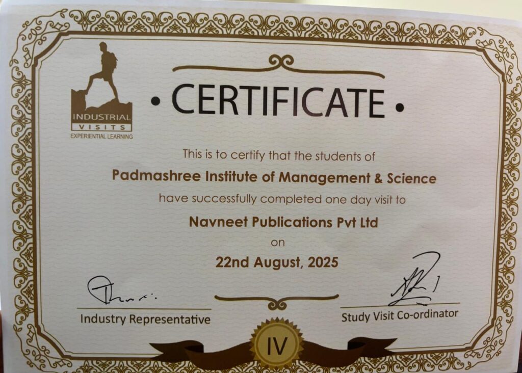 On 22nd August 2025 , our MBA students from Padmashree Institute of Management & Sciences (PIMS) had the enriching opportunity to visit Navneet Publications Pvt. Ltd., Maharashtra.