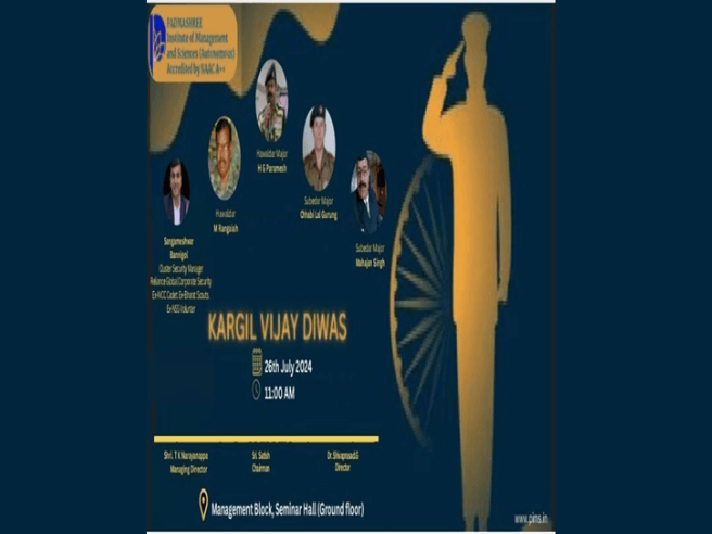 On Vijay Kargil Divas, we come together to pay tribute to the brave soldiers who laid down their lives for the country, honoring their valor and sacrifice. Their unwavering dedication and indomitable spirit serve as a source of inspiration for us all, reminding us of the importance of unity, resilience, and patriotism. As speakers, we stand in solidarity with our armed forces, expressing our deepest gratitude for their service and unwavering commitment to defending our nation. Vijay Kargil Divas is a day of remembrance, reflection, and reverence, as we honor the heroes of the Kargil War and pledge to uphold their legacy of bravery and sacrifice. The Kargil Vijay Divas was held on 26th July 2024 Friday 2024. B.COM, BBA, MBA and M.COM students were addressed on this occasion.